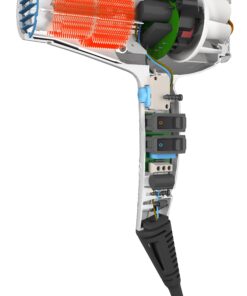 L’impugnatura ridisegnata, l’ottimizzazione della bilanciatura e l’alleggerimento di tutta la componentistica ha permesso di ottenere un asciugacapelli confortevole da usare e che salvaguarda la salute del parrucchiere.